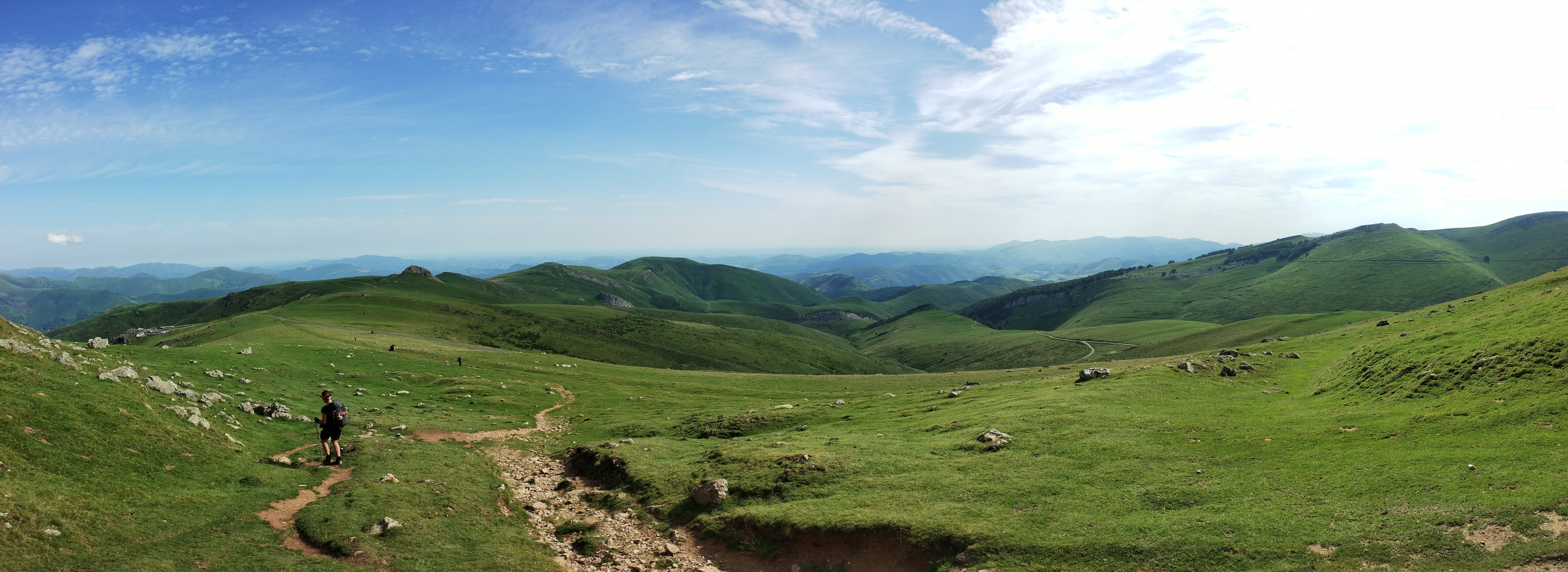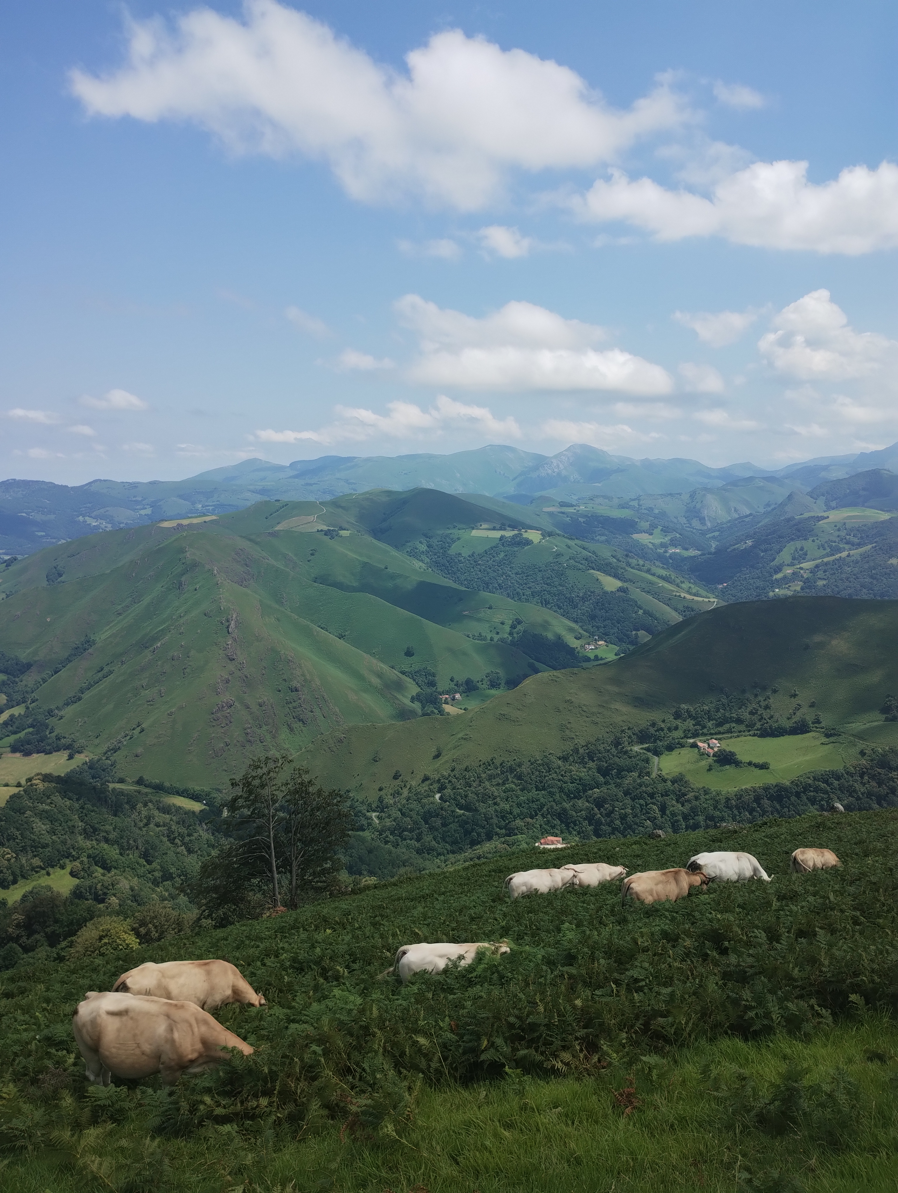 Il percorso di oggi è stato bellissimo: abbiamo camminato comodamente lungo strade asfaltate o comunque sempre ben battute circondati da un panorama montano incantevole molto diverso dalle montagne bergamasche a cui sono abituato. Dicono che la prima tappa sia la più impegnativa e la più bella, probabilmente avranno ragione. Emozionante è stato l’ingresso in Navarra e l’abbandono del suolo francese sancito da una spessa lastra di pietra sul ciglio del sentiero.
