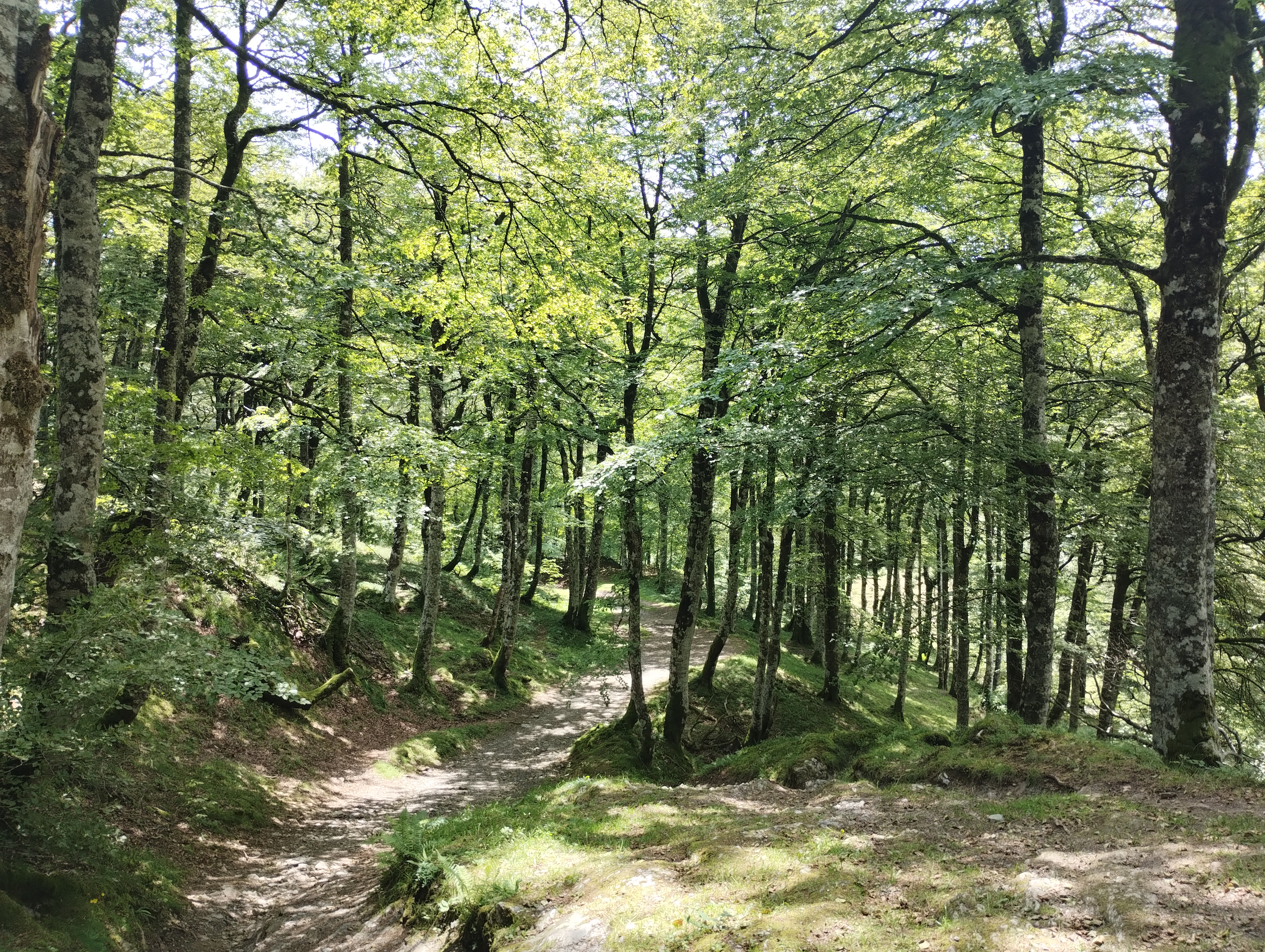 La tappa odierna, quasi completamente in discesa con 900 metri di dislivello, si snoda attraverso boschi di faggi, querce e pini che offrono una frescura fondamentale per poter camminare indisturbati da un sole che già dalle 10 del mattino inizia a farsi sentire.