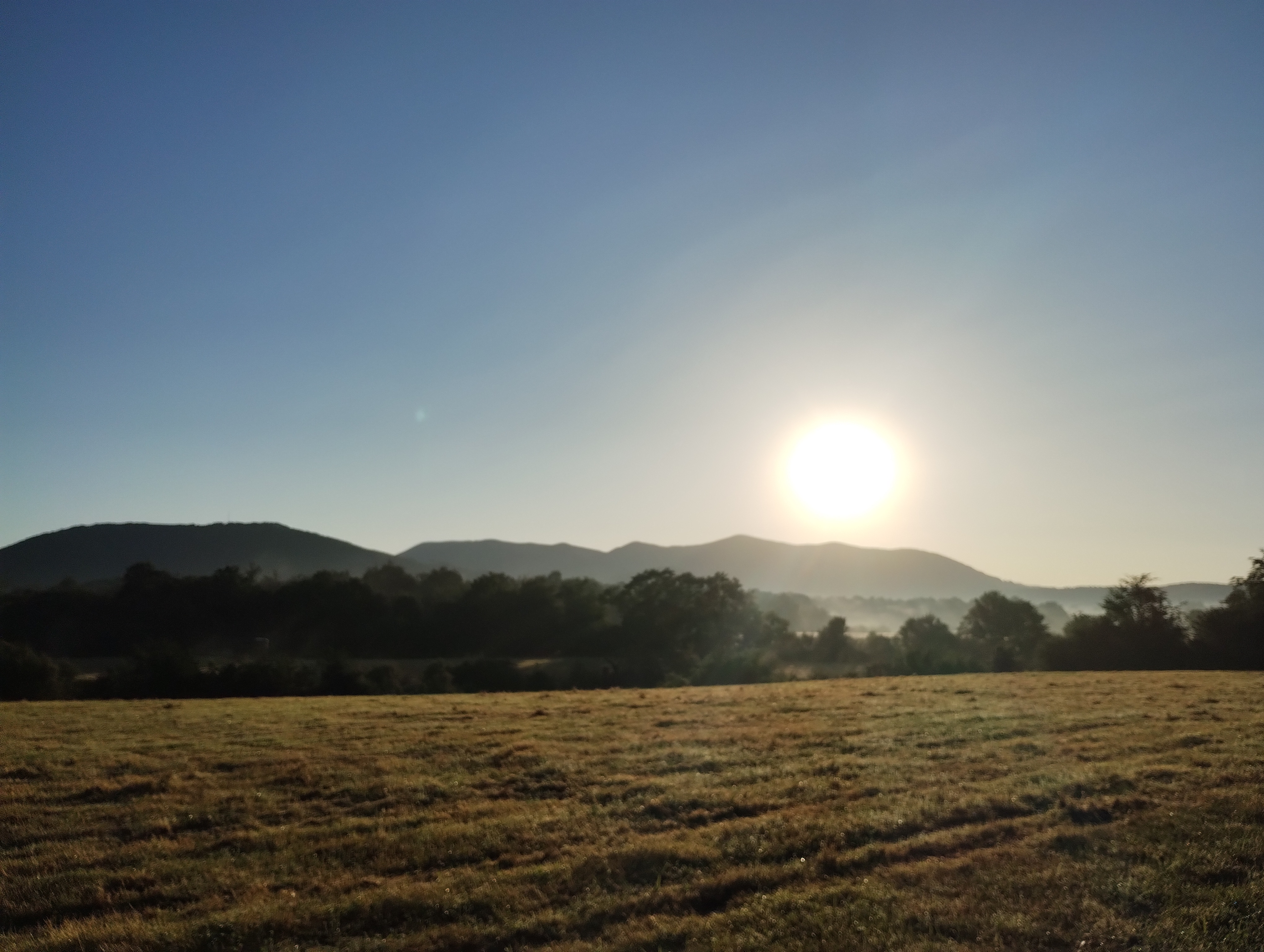 Durante la mattina ho camminato tranquillamente accompagnato dal sorgere del sole alle mie spalle.