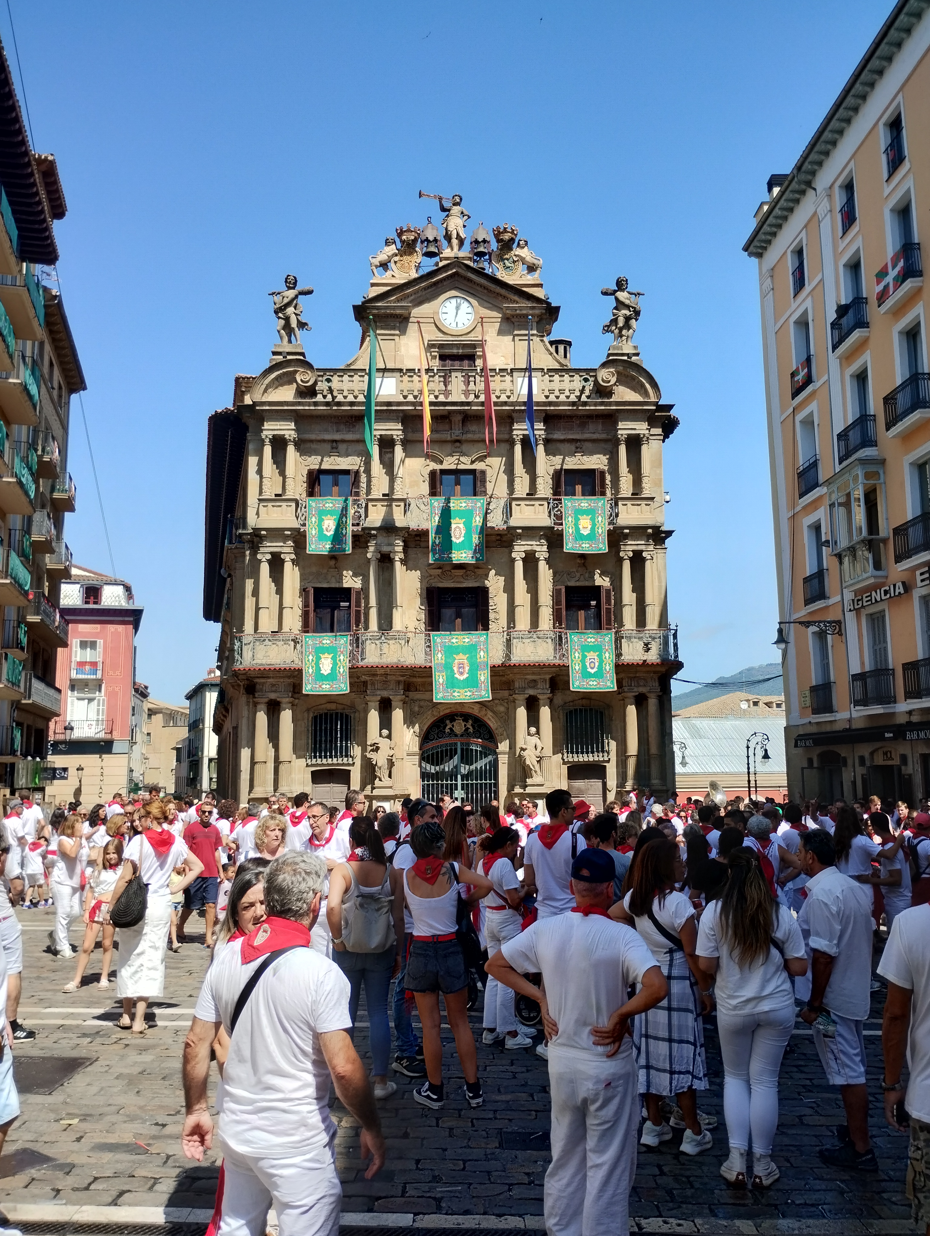 Superata questa nota folcloristica ho potuto apprezzare un’intera città in festa con tutti i presenti abbigliati secondo tradizione: pantaloni e maglietta bianca, foulard/drappo rosso. Per le strade bande musicali, gruppi di batukada, balli di gruppo, birre, birre e ancora birre…