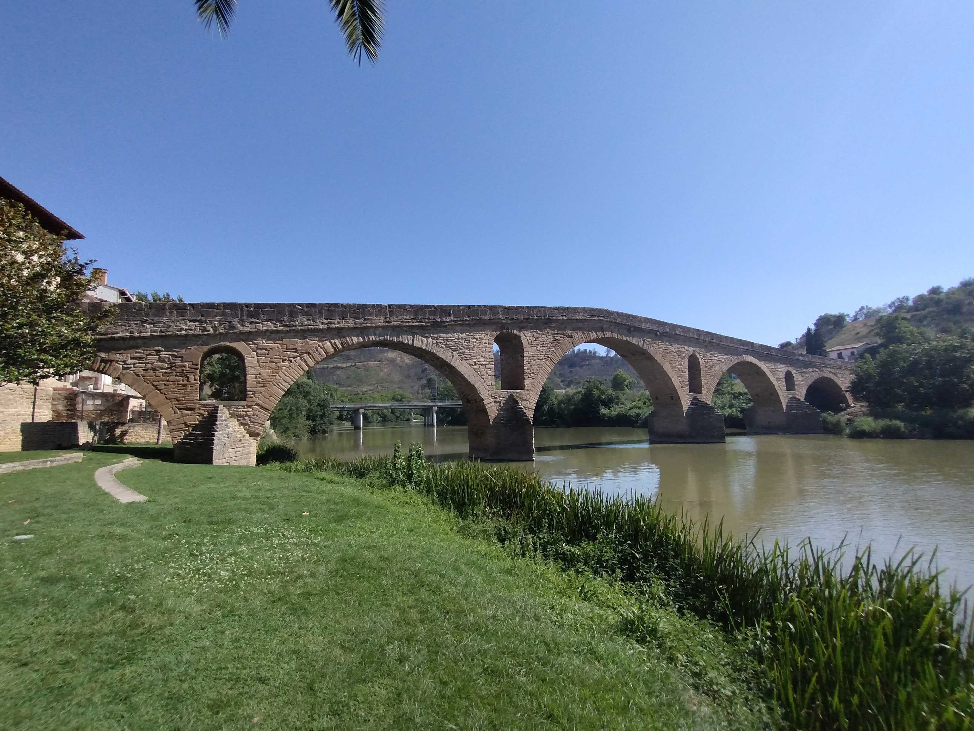 Da lì in poi il percorso è stato piuttosto pianeggiante con qualche saliscendi sotto un sole sempre più cocente. Con una deviazione di qualche chilometro ho raggiunto la chiesa romanica a pianta ottagonale di Santa María de Eunate, un eremo templare che si distingue per il suo chiostro esterno in stile romanico. L’arrivo è a Puente Le Reina, un pueblo costruito intorno al ponte che la regina Mayor ordinò di costruire sul fiume Arga.
