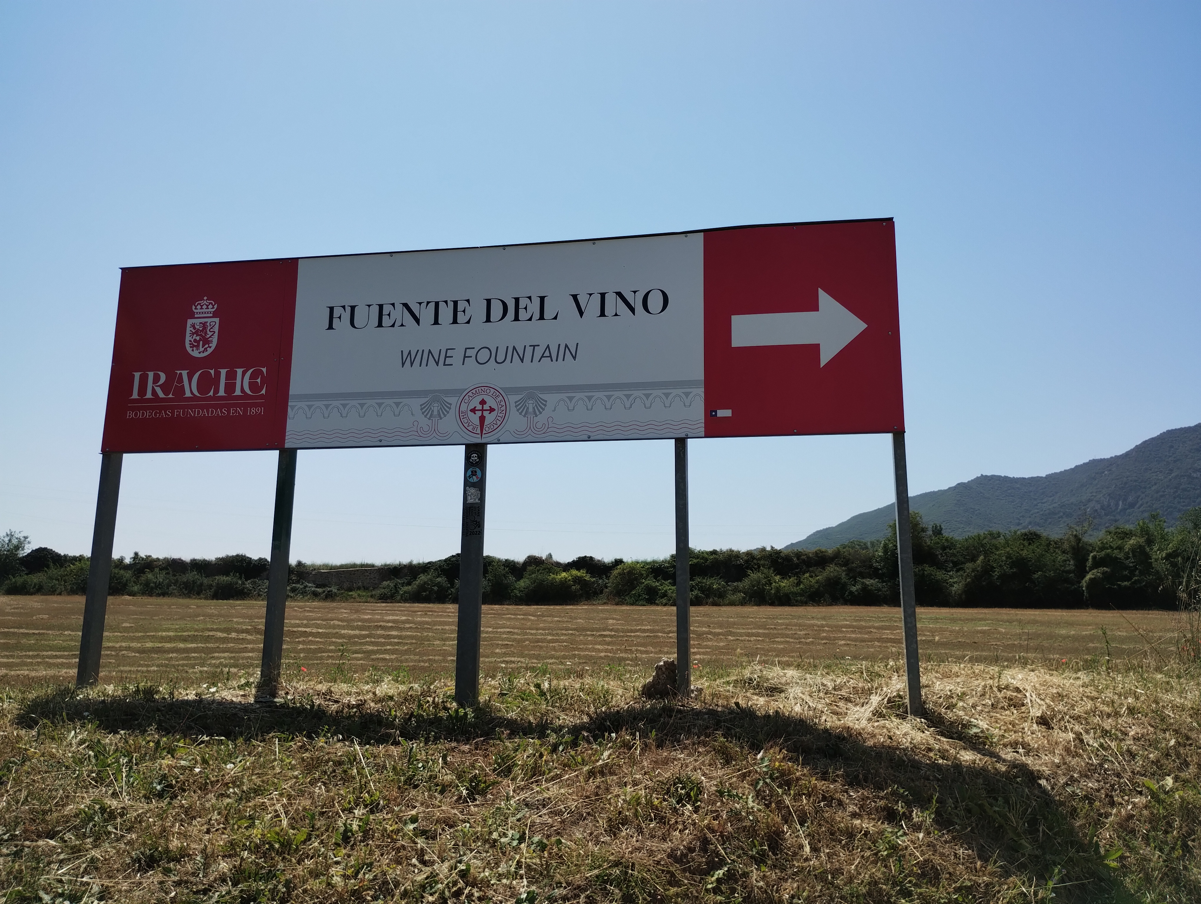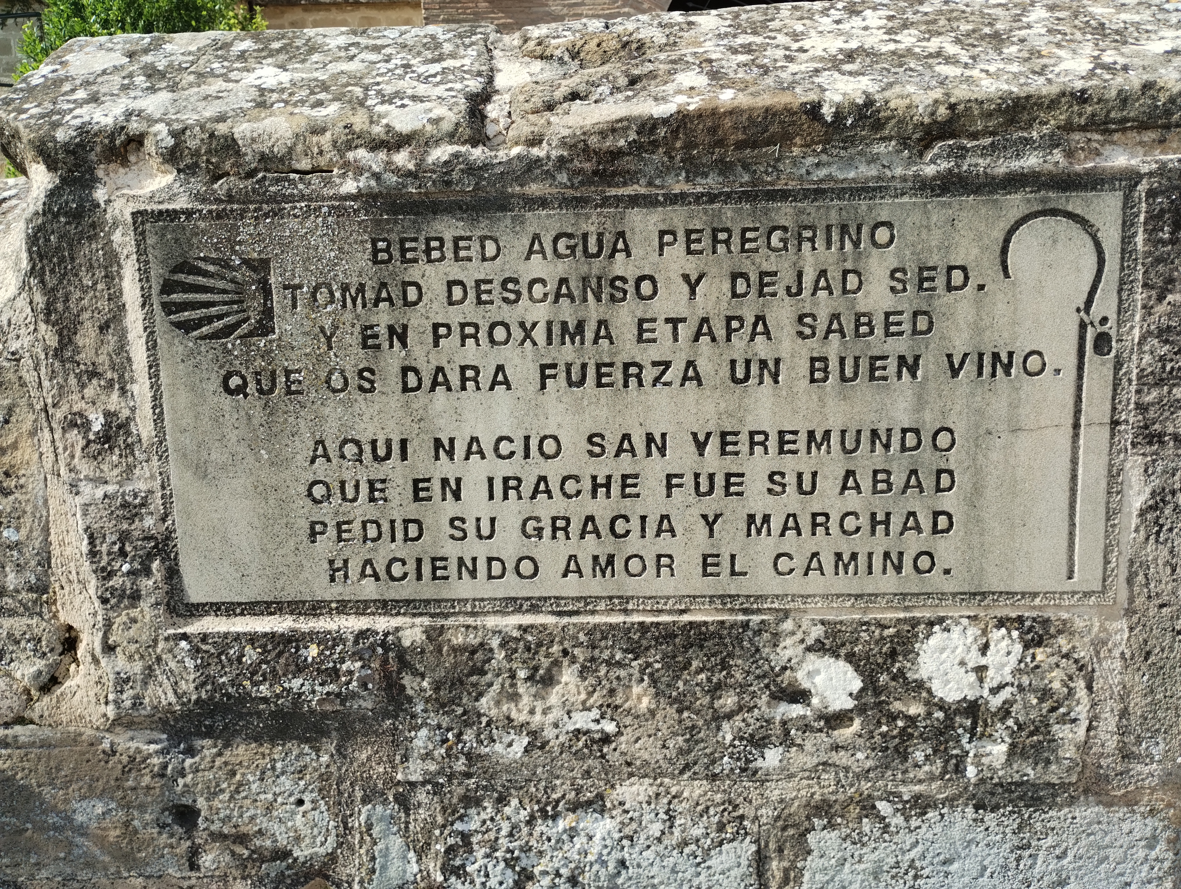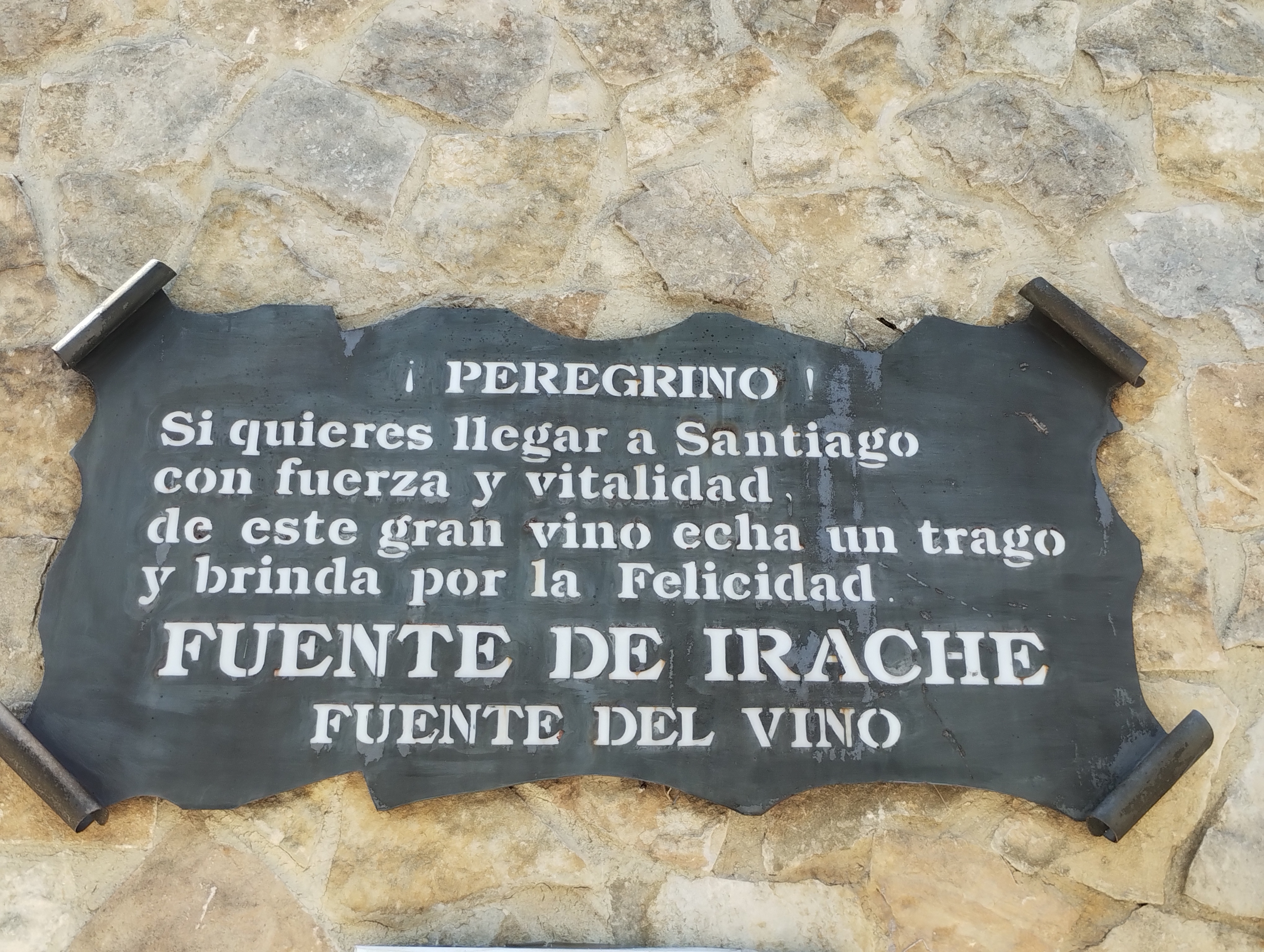 Pochi chilometri più avanti mi imbatto infatti nella famosa fontana del vino di Irache che recita “Pellegrino! Se vuoi arrivare a Santiago con forza e vitalità, di questo gran vino bevi un sorso e brida alla felicità”. A quel punto si pone il dilemma: svuotare l’acqua dalla sola borraccia che ho e riempirla di vino oppure bere a canna dalla fonte. Pur restando molto allettato dalla prima opzione decido per la seconda e proseguo lungo la salita che porta al monastero situato pochi metri più avanti.