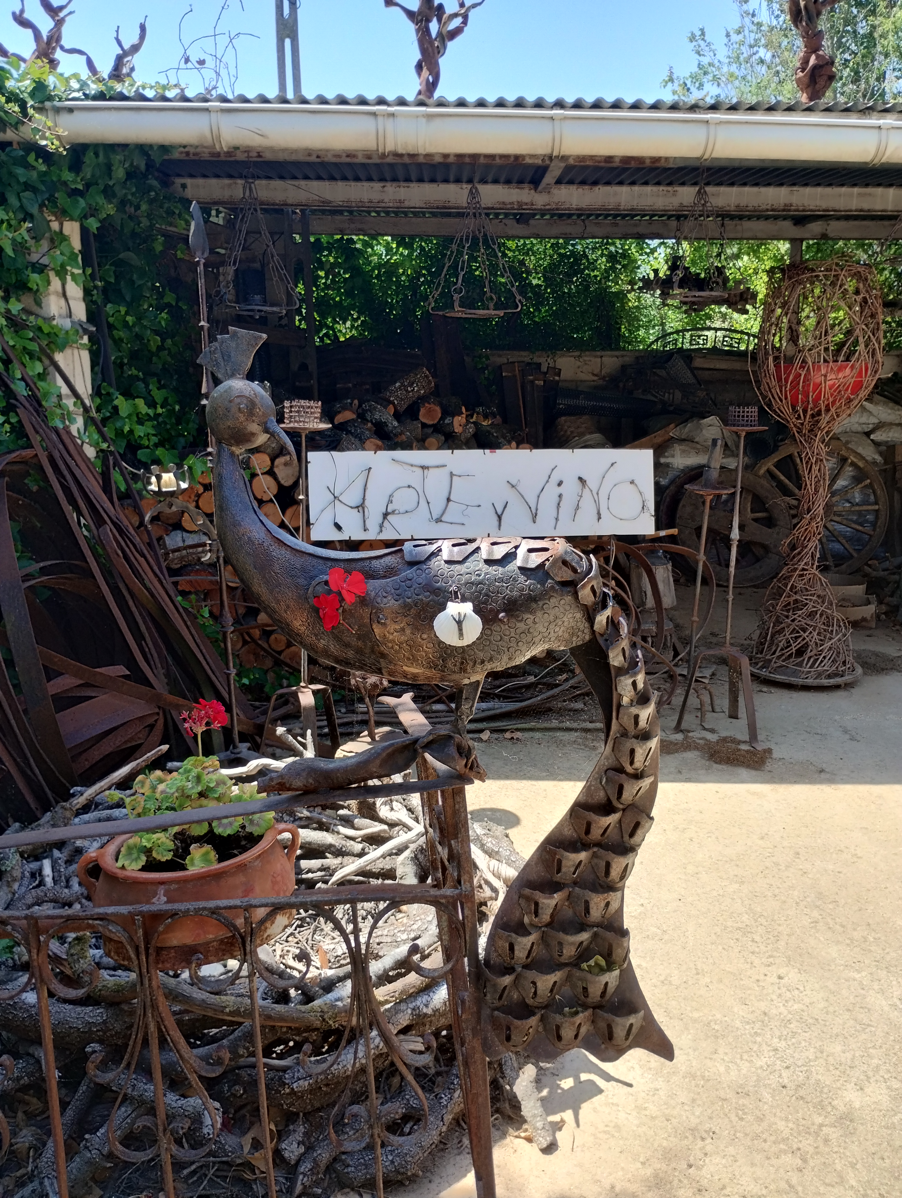 Il sole è ormai a picco e sono necessarie molte soste, praticamente ad ogni fontana, per bagnare testa, faccia, braccia, cappello, tutto… Il giardino di fronte al monastero sembra un luogo invitante per una sosta. È a quel punto che vengo avvicinato da un frate di non so quale ordine che, con la scusa di vendermi dell’olio al rosmarino ottimo per alleviare i dolori muscolari da cammino, inizia il processo di conversione dell’eretico camminatore.