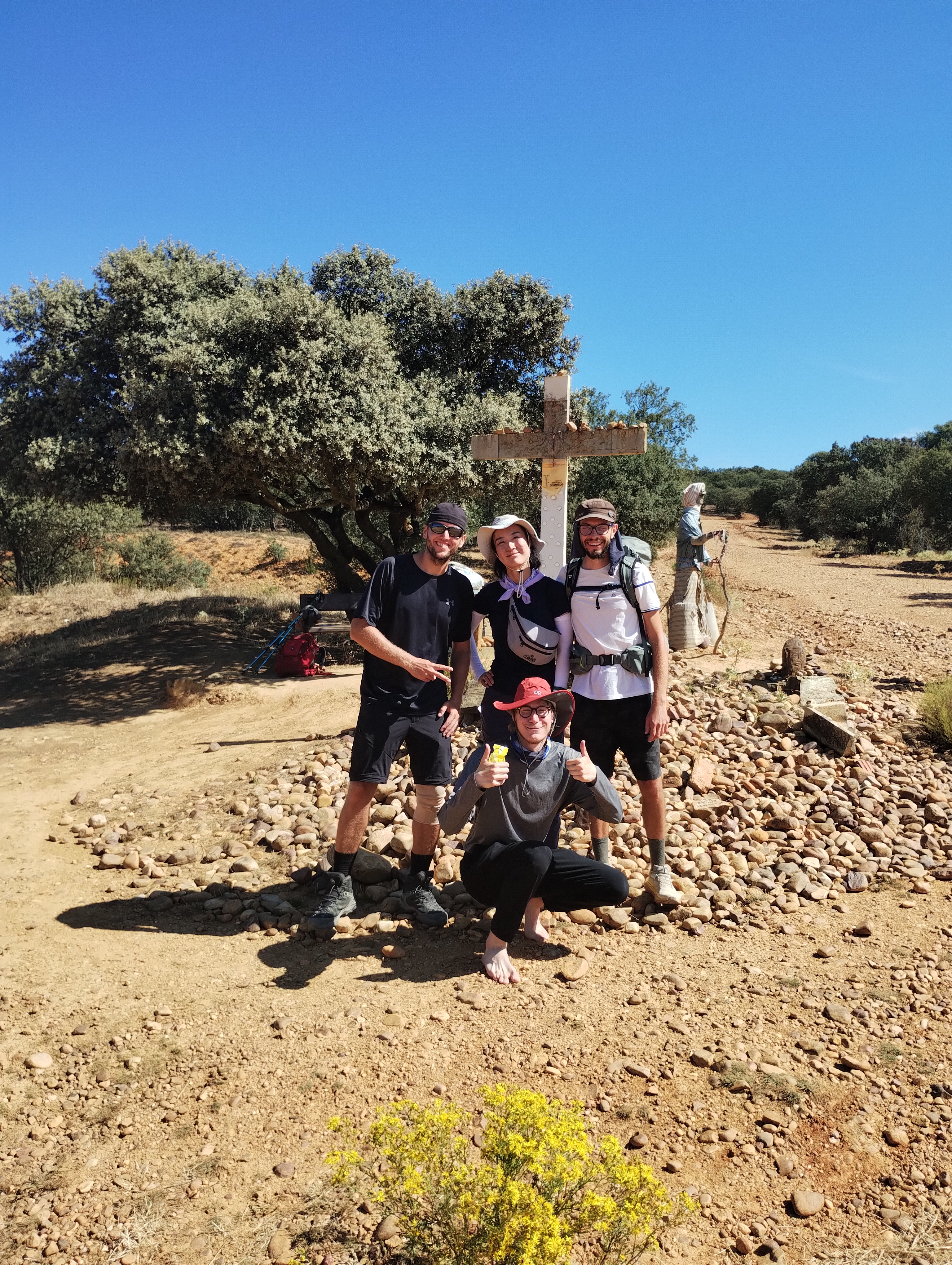 Partiti dal paesino di Foncebadón poco prima dell’alba, nel giro di mezz’ora abbiamo raggiunto la famosa Croce di Ferro, uno dei luoghi più importanti del cammino. I pellegrini che la raggiungono lasciano ai suoi piedi una o più pietre che rappresentano i loro fardelli.
