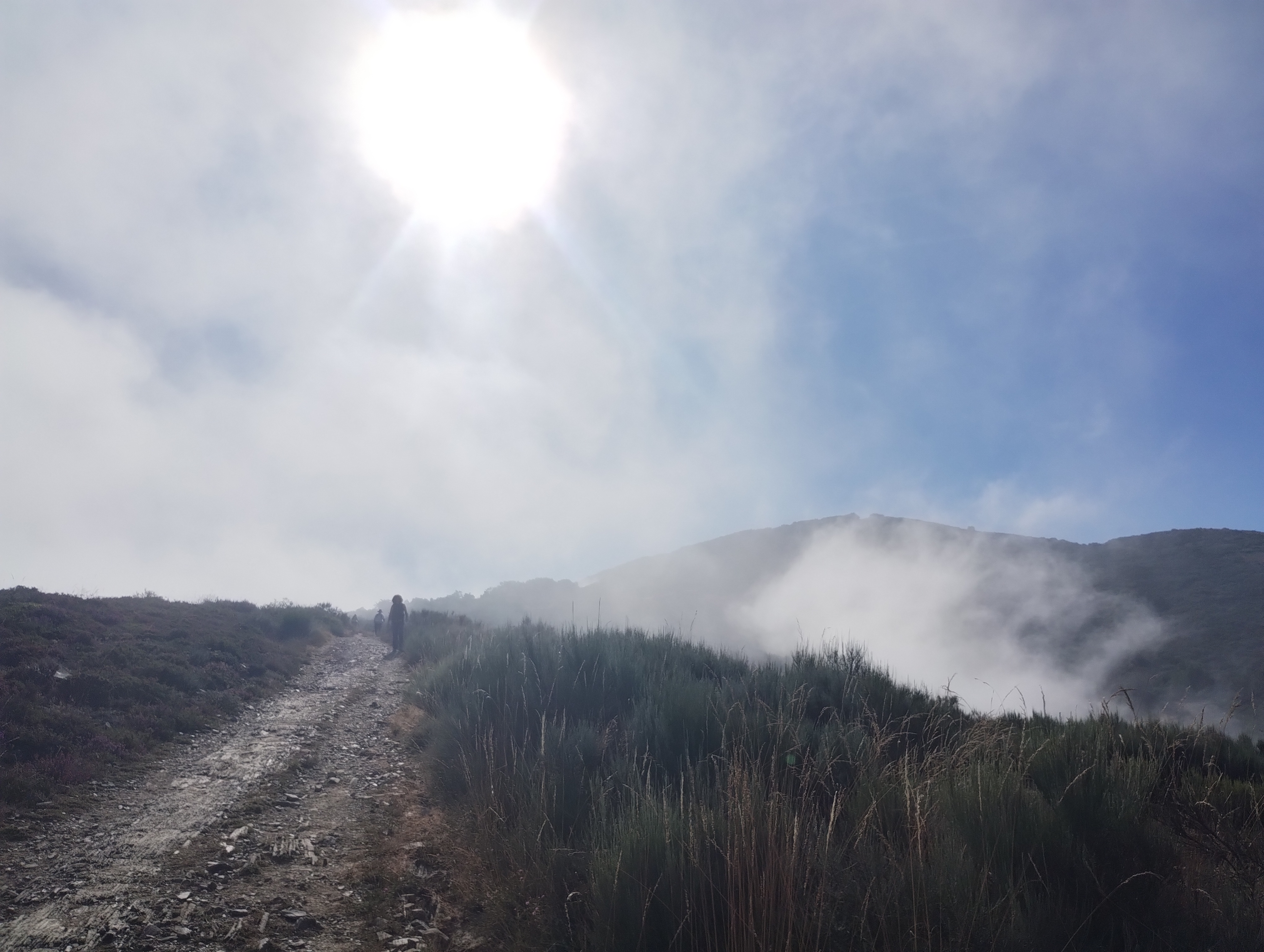Superata la Croce di Ferro, dove ciascuno di noi si è fatto immortalare in scatti che potessero testimoniare l’arrivo al luogo sacro, abbiamo proseguito verso il punto più alto dell’intero cammino situato a 1505 metri di altitudine. Da lì il panorama era spettacolare anche grazie alle nubi che ricoprivano come un tappeto le vallate sottostanti.