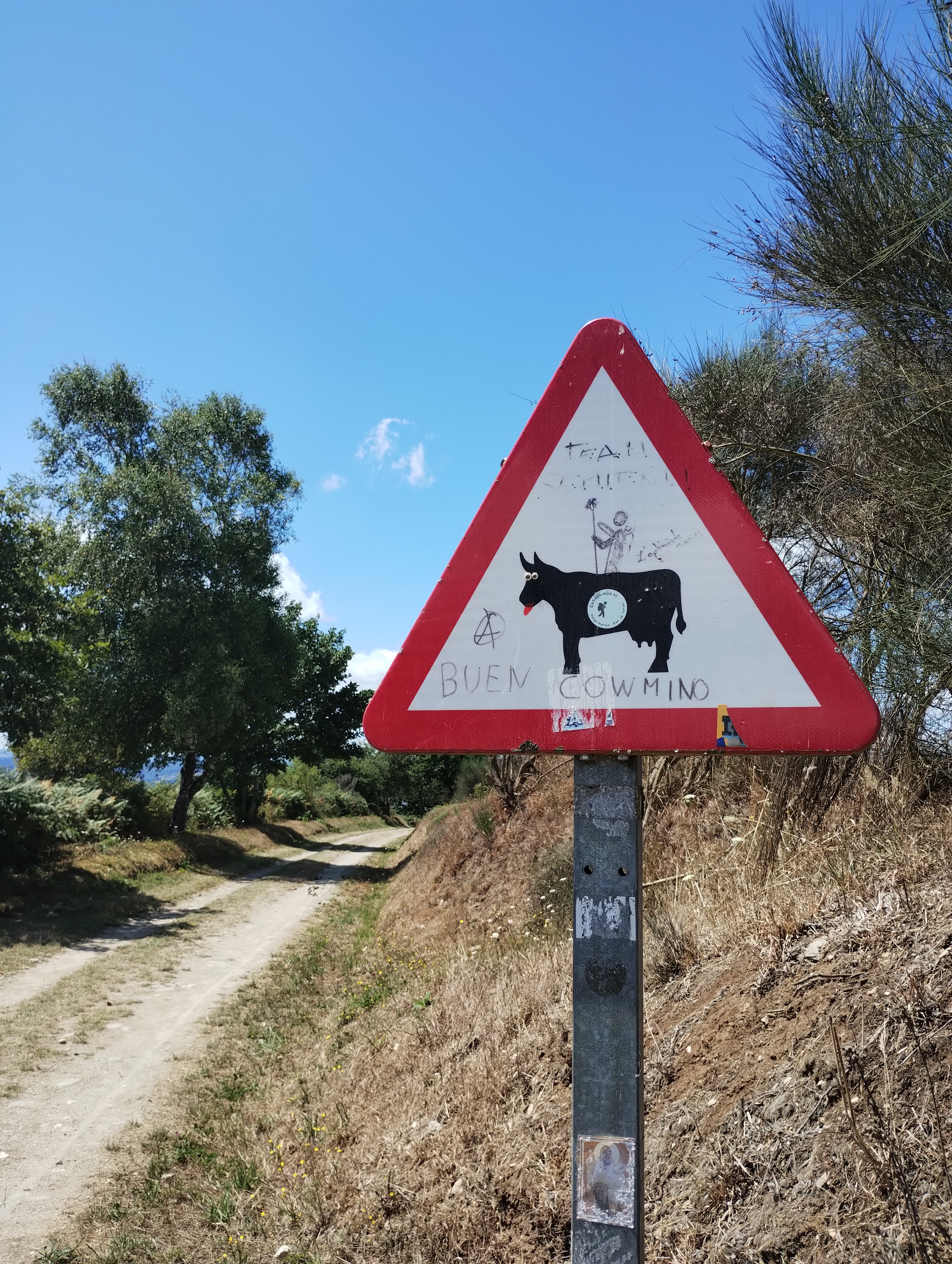 Fino ad oggi non ho mai sentito il bisogno di camminare con musica nelle orecchie, cosa che invece molti pellegrini amano fare per entrare in una dimensione di intimità. Tuttavia la tappa di oggi ha messo alla prova la mia tranquillità a causa del gran traffico di auto e camion che sfrecciavano sulla strada provinciale situata giusto al lato del nostro sentiero. E’ in questa circostanza che ho trovato di sollievo l’accompagnamento musicale offerto dal mio nuovo compagno di viaggio Joe che con il suo marcato accento di Boston raccontava aneddoti sui brani che mandava in riproduzione dal suo cellulare. Una lunga serie di hit rock ‘n roll, blues e folk del periodo di Woodstock, poiché Joe, originale americano sulla sessantina, aveva nel cuore solamente quello, la musica di Woodstock!!